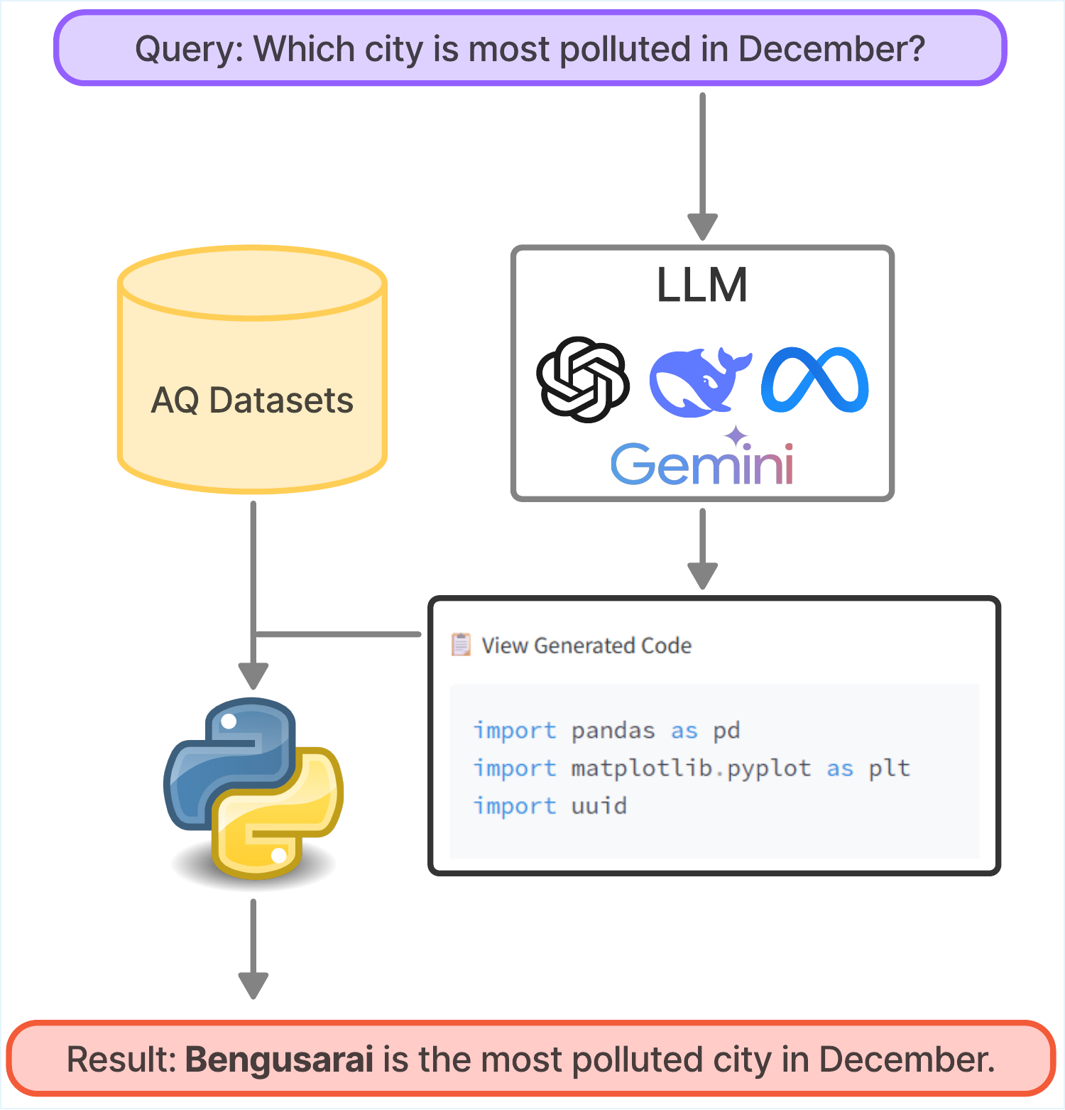VayuBench and VayuChat: Executable Benchmarking and Deployment of LLMs for Multi-Dataset Air Quality Analytics